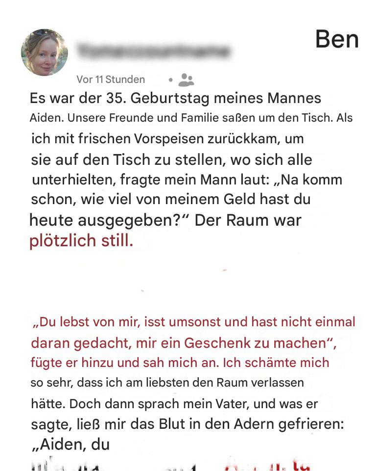 Auf der Geburtstagsfeier meines Mannes sagte er zu mir: „Wenn du von mir lebst, isst du umsonst.“ Die Worte meines Vaters jagten mir eine Gänsehaut ein.