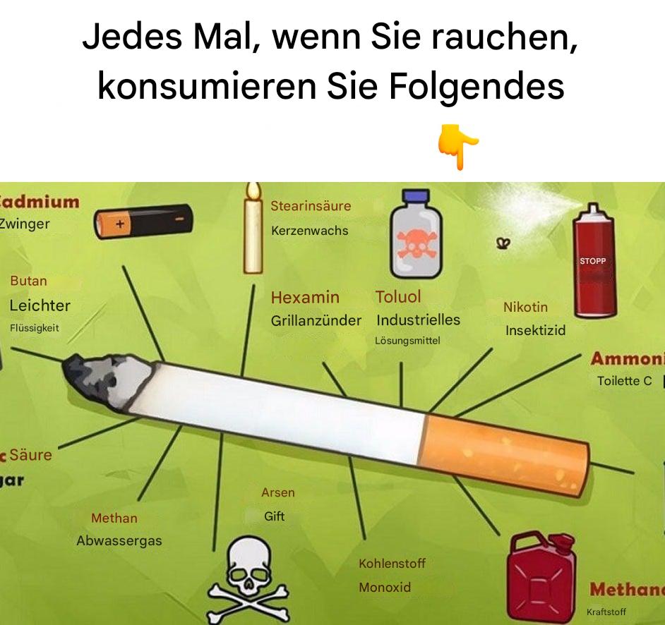 Jedes Mal, wenn Du rauchst, konsumierst Du tatsächlich Folgendes